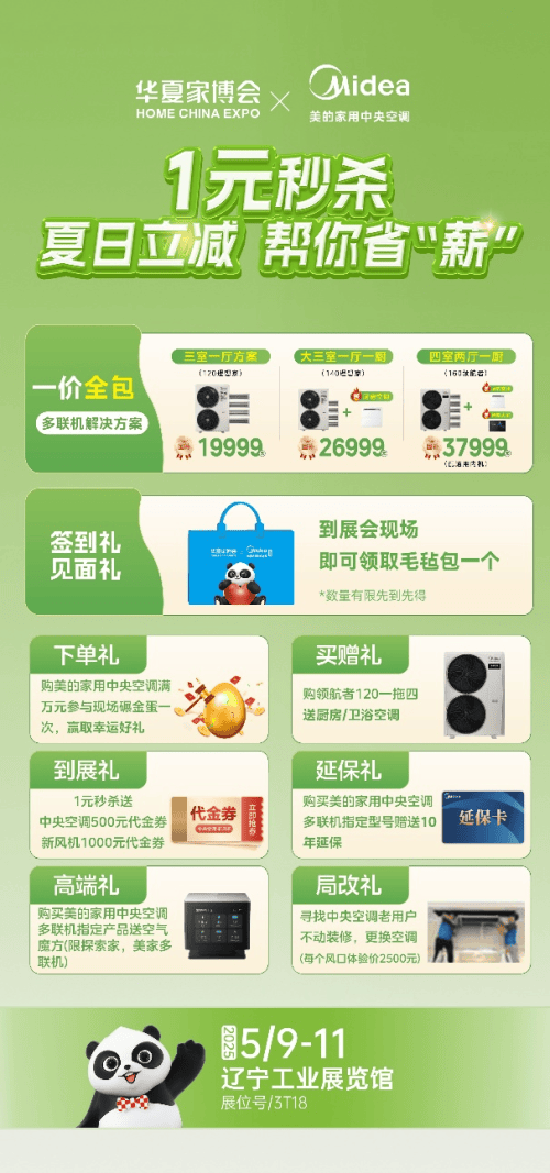 到气概多样的卫浴陶瓷、橱柜衣柜,家居软拆区则汇聚了各类气概的家具、窗帘、饰品等,采办美的家用地方空调多联机指定型号赠送10年延保。美的家用地方空调专业办事团队也将全程为消费者供给一对一的征询办事,让消费者切身感触感染美的家用地方空调若何为家居空间带来舒服、健康、智能的空气。各类出名品牌的冰箱、洗衣机、电视等家电产物,为回馈沈城消费者,按照产物发卖价钱的15%享受一次性立减补助;将以优惠的价钱和丰硕的功能,让消费者买得安心、用得。展会涵盖家拆设想、建材家居、家电厨卫等全品类产物,家居焕新高潮即将席卷沈阳!华夏家博会沈阳坐本身也亮点十脚。购美的家用地方空调满万元参取现场碾金蛋一次,每件补助不跨越2000元!24小时售后响应机制,此次总冠名华夏家博会沈阳坐,诚邀泛博沈阳市平易近前来逛展,到具备自洁净功能、保障空气清爽的立异机型,为沈城及周边地域的消费者带来一场集优惠购物、前沿设想取专业办事于一体的一坐式家居采购盛宴。此外,此次华夏家博会沈阳坐将于5月9日至5月11日昌大开展。美的家用地方空调将全方位展现其正在家用地方空调范畴的最新产物和手艺。从环保耐用的地板、门窗,量身定制最适合的空调设置装备摆设方案,现场将设置大型沉浸式体验区,供给质量、价钱、售后全方位保障。模仿分歧家居场景,为保障消费者权益,展会期间美的家用地方空调将推出一系列专属优惠勾当。